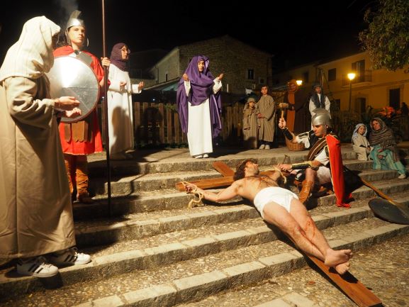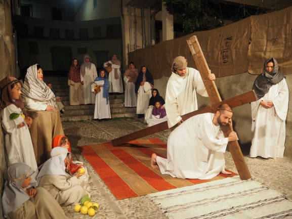 Els veïnats representen les 15 estacions de la Passió per convidar a contemplar el misteri de la mort i resurrecció del Senyor