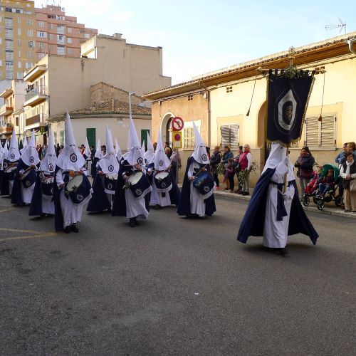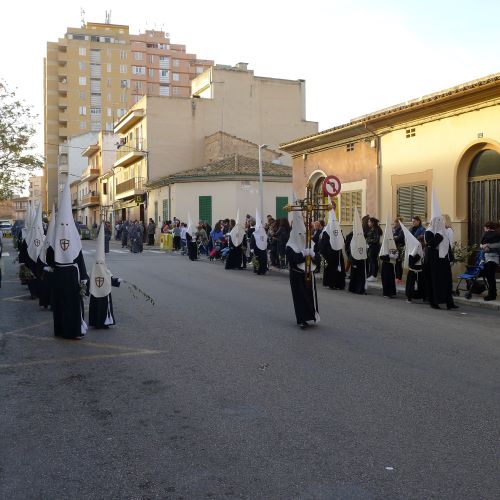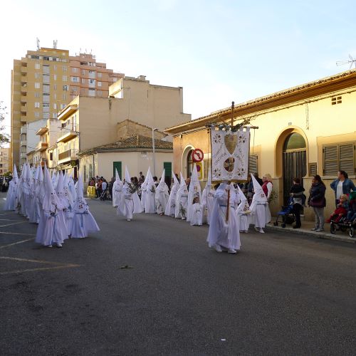 Després a les 19 hores es va celebrar la processó del Diumenge de Rams, que des de la Parròquia de Crist Rei pel carrer Costa i Llobera, general Luque, Beat Ramon Llull, Bisbe Llompart, Comerç i Major arriba fins a la Parròquia de Santa Maria la Major . Tots els confrares participants porten un ram d’olivera o un palmell,