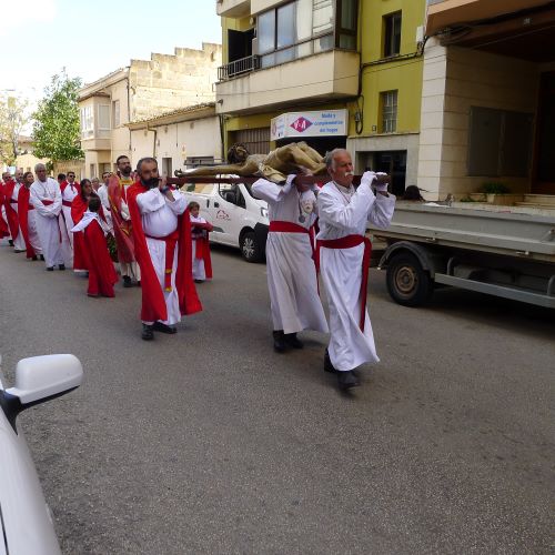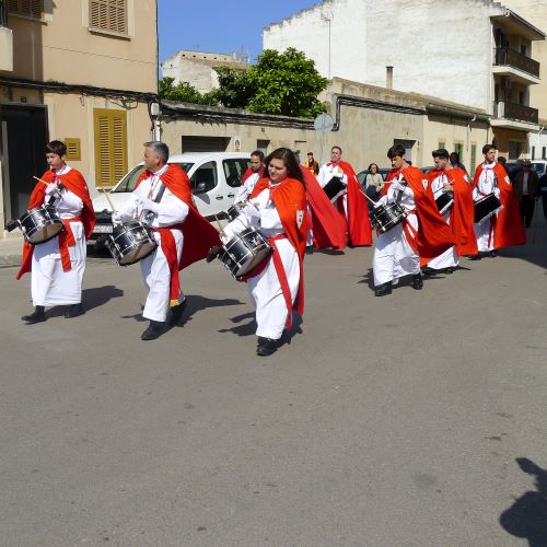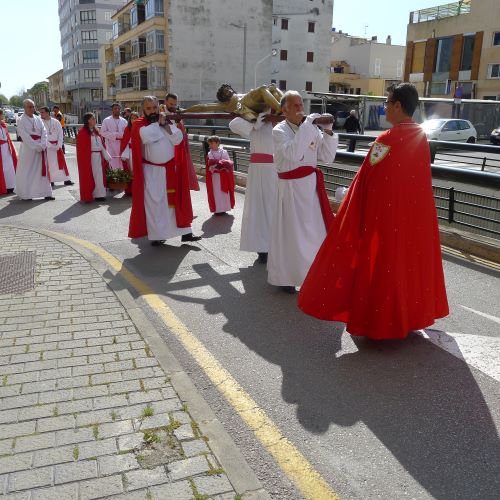 Des d’allà va sortir pel carrer de la Balanguera cap al carrer de Costa i Llobera i carrer de Lloseta fins arribar a la residència d’Ancians de la Tercera Edat de Crist Rei. Darrere de la imatge presidia el rector Mn. Vaig seguir acompanyat de dos escolans, la Banda de la Confraria i els fidels que participaven en la processó.