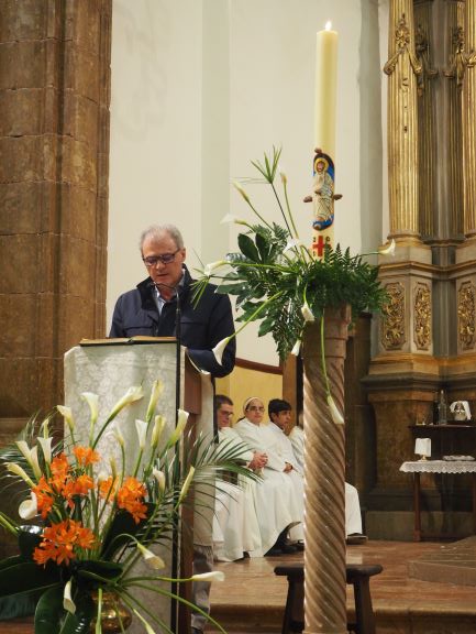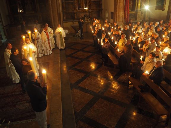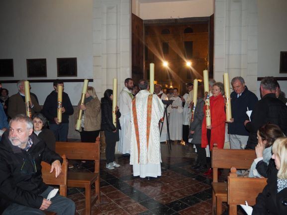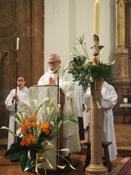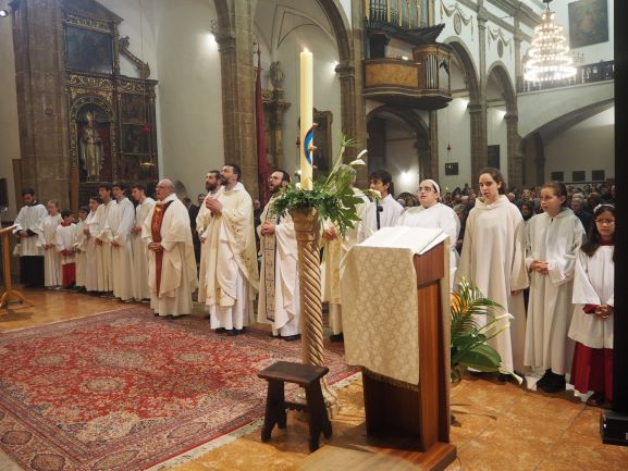 El rector insistí en què en aquesta nova època, en què la societat ja no és cristiana, la llum de Crist té tanta força com el primer dia. I digué que tot i que les estructures de la passada època de la cristiandat ja no donen fruit, és possible trobar la llum del ressuscitat allà on Jesucrist ha decidit quedar-se, especialment en els sagraments i la fraternitat del germans. Com a exemple de què és possible trobar Crist avui, el rector llegí tres breus fragments de testimonis de membres de la nostra UP. Un jove afirmava “Quan venc a l’església sent que el meu cor descansa”. Un altra deia: “La Vigília de l’any passat va ser increïble. M’he preparat per a renovar les meves promeses baptismals. Gràcies Crist per elegir-me”. I un pare de família apuntava: “Seguir a Crist implica que Ell sigui raó i afecte i actuï per damunt dels sentiments”.