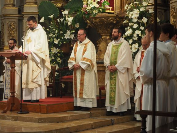 Carles Seguí continuà l’homilia explicant que les estructures de l’església que estan organitzades sobre els valors, però sense Crist, no evangelitzen. Per a evangelitzar –va dir- és necessari un home nou en una comunitat nova. Un home que ha tengut un encontre amb Jesucrist i viu a partir d’aquesta novetat. “Basta ser un deixeble fidel per expressar que Crist segueix viu i et regala una relació amb Ell, que és un camí, una veritat i una vida”, afirmà. I aclarí que per a evangelitzar no són necessaris plans pastorals sinó “fer deixebles”, testimonis, com Arnold que a la seva edat ha demanat el baptisme. I assegurà que “no es necessiten moltes raons per fer-ho, només haver estat atret per Déu”.