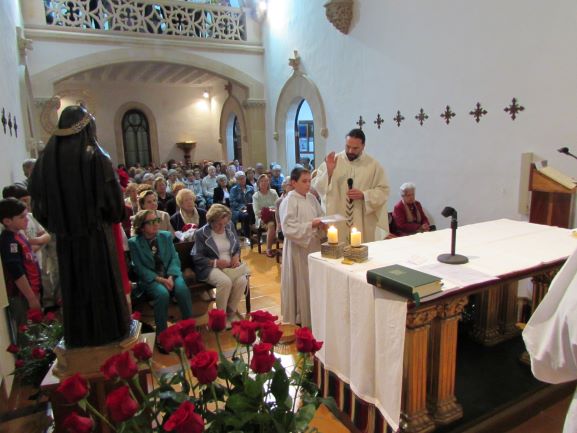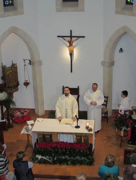 El cor parroquial cor, sota la direcció de Bernat Forteza, va animar la celebració de la Missa amb les seves cançons. En l’homilia, Mn Carlos va continuar parlant de la figura de Santa Rita que estava al costat del altar. Ella, que es distingia pel seu amor i caritat als diferents estats de la vida, com a esposa, mare, vídua i religiosa posteriorment. També va lloar la feina feta pel taller de la caritat de Santa Rita per atendre, en les seves possibilitats, les peticions que vénen.