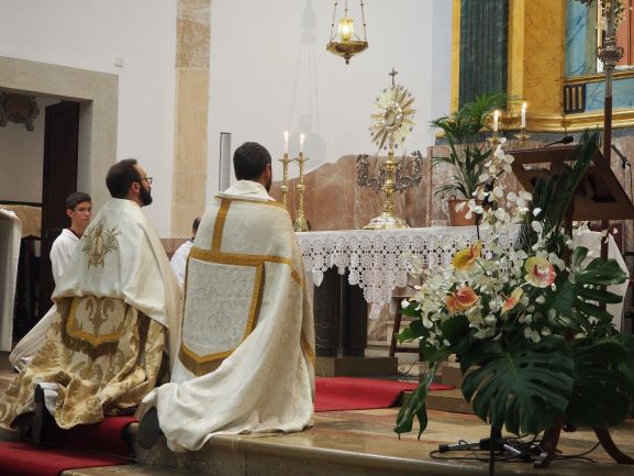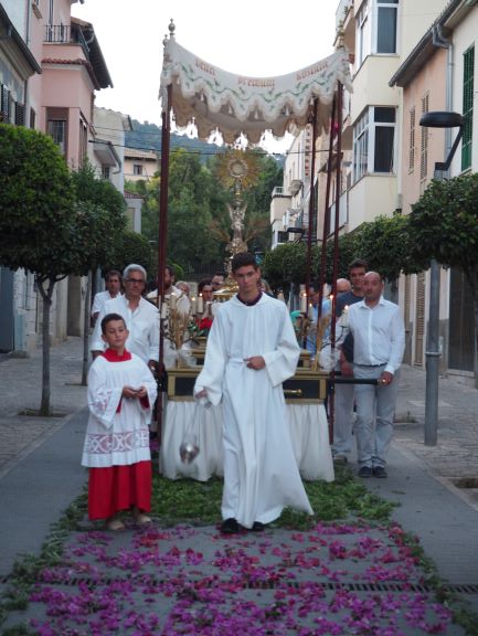 Els cristians de Lloseta han celebrat amb goig la Festa del Corpus. Els fidels s’han reunit a l’església parroquial, entorn de l’altar, per participar d’aquesta festa que manifesta la certesa de què en el pa i el vi eucarístic hi és realment present Jesucrist, donat com a sagrament. En l’homilia el vicari de la nostra UP de la Mare de Déu, Baltasar Morell, explicà que cada eucaristia és memorial i per això “no és una representació teatral”, sinó que “és Jesucrist que torna a fer present allò que va instituir fa 2.000 anys”. Davant aquest fet admirable i incomprensible de la donació que ens fa Jesucrist del seu cos i la seva sang com a aliment, “l’actitud del cristià és la de devoció”, tal i com es recita en l’oració de la col·lecta. Una oració en la qual –recordà també Morell- es demana que “experimentem constantment en nosaltres els efectes de la Vostra redempció”, és a dir, demanam esser conscients que “no és el mateix que el Senyor hagi mort per tu, que que no ho hagi fet”. I per aquest motiu Baltasar Morell animà als fidels a estar alegres i a donar testimoni de la victòria de Crist en la vida de cada un perquè “si ens alegram d’una victòria efímera, com la del partit del Mallorca, molt més ens hem d’alegrar de la Victòria que transforma la nostra vida”.
