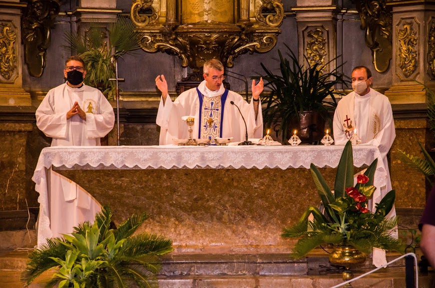 La missa fou presidida per l’anterior rector i actual bisbe auxiliar de Barcelona, monsenyor Toni Vadell i concelebrada per P. Fran Javier López, pare paül i P. Alfons Vivern, franciscà TOR.