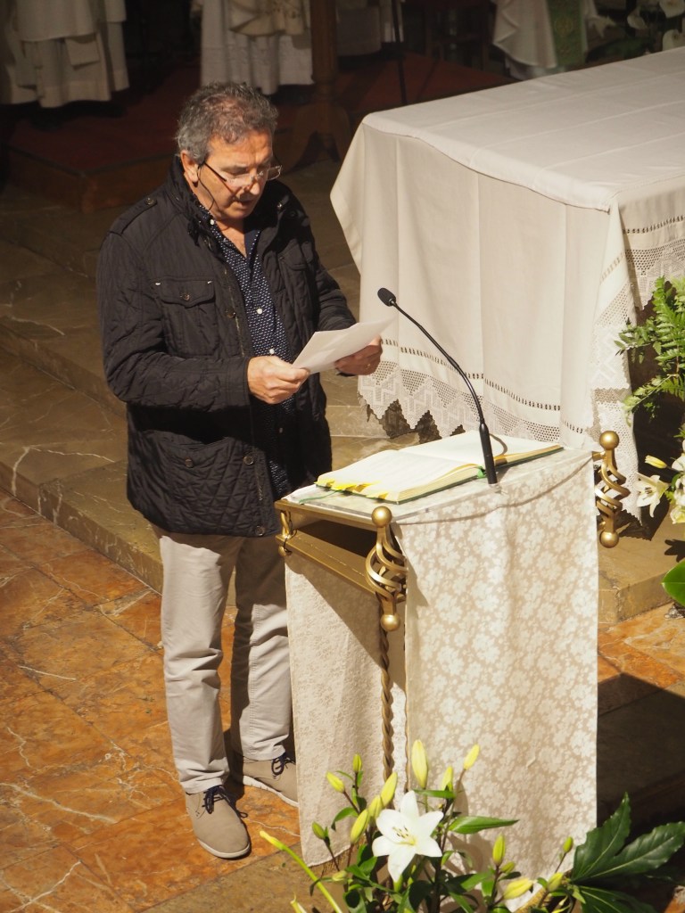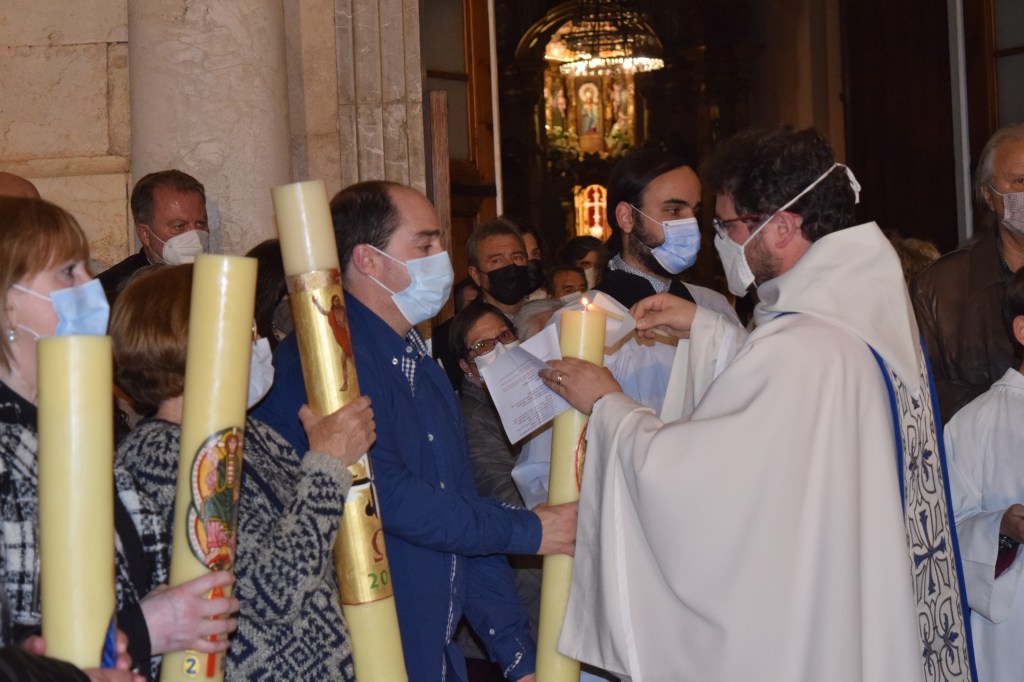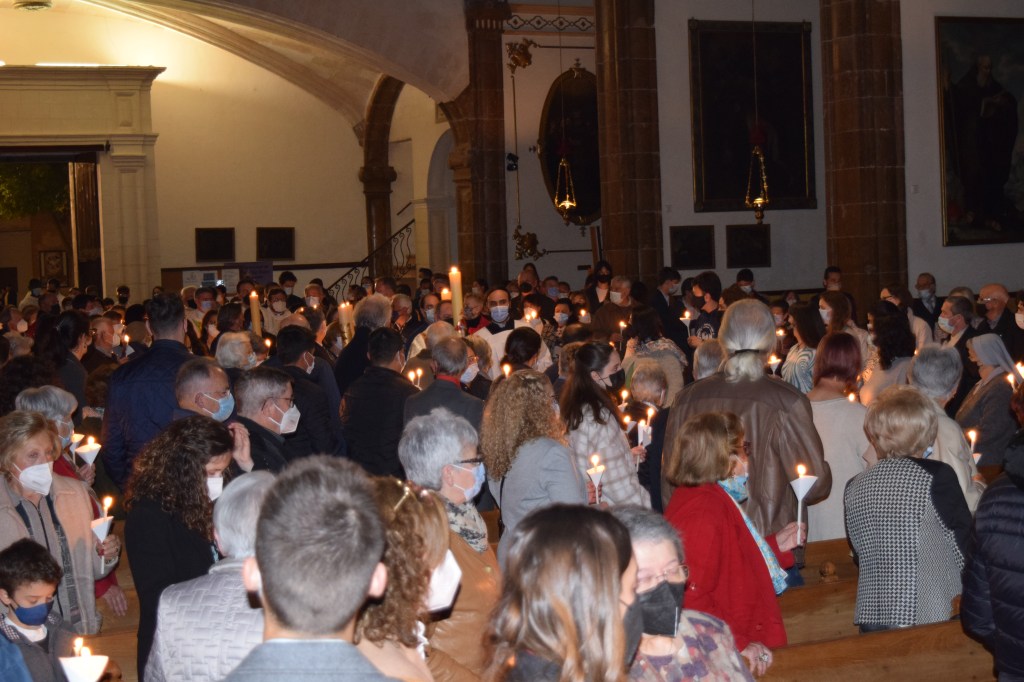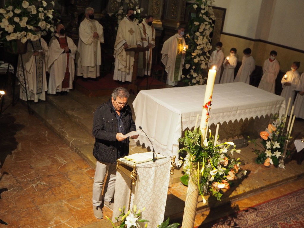 En l’homilia, el rector Carles Seguí, va remarcar que el sentit de la Vigília d’aquesta nit és “compartir un esdeveniment que és capaç de sostenir la vida, perquè no ens poden sostenir les nostres idees o forces, sinó només la Pasqua del Senyor”. I a partir de la memòria d’aquelles dones que anaren al sepulcre i el trobaren buit, el rector apuntà que potser nosaltres, com els apòstols quan sentiren el testimoni de les dones, encara tenim moments de dubtes. Però senyalà que “no creiem perquè tenguem una gran capacitat de captar i analitzar dades, sinó perquè hem vist el cos del Ressuscitat, a través del testimoni d’algun cristià contemporani ami, que ha mostrat la bellesa d’una vida en la qual dolor, llibertat i alegria poden conviure i crear persones plenes de sentit”. I va recordar que tota la UP ha pogut sentir i tocar al Senyor a través del testimoni de fe que ha donat l’ex-rector de l’agrupació de parròquies i bisbe auxiliar de Barcelona, monsenyor Antoni Vadell (+) durant tota la seva vida i especialment en els seus darrers mesos de malaltia.