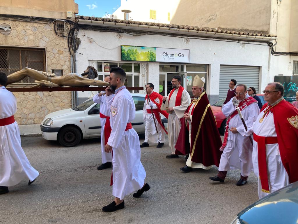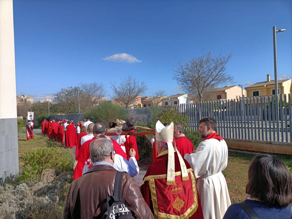 El passat dissabte 1 d’abril, vigília del Diumenge de Rams, es va celebrar a la parròquia de Crist Rei d’Inca la processó del Sant Crist del Perdó i la bona mort fins a la residència de la tercera edat d’aquesta barriada. Ja fa uns anys que la confraria de Crist Rei celebra aquest acte, però enguany ha estat fins i tot més especial perquè ha estat presidit pel bisbe de Mallorca, Mons. Sebastià Taltavull, en el marc de la visita pastoral.