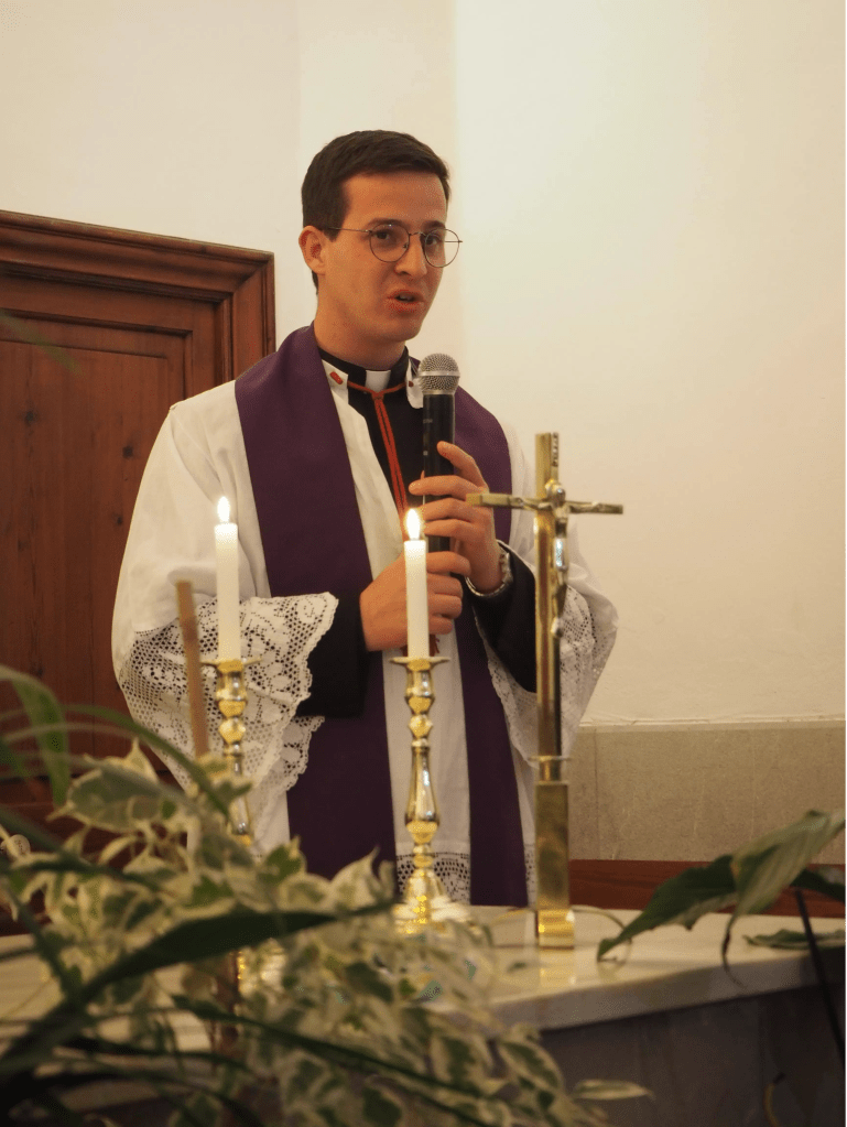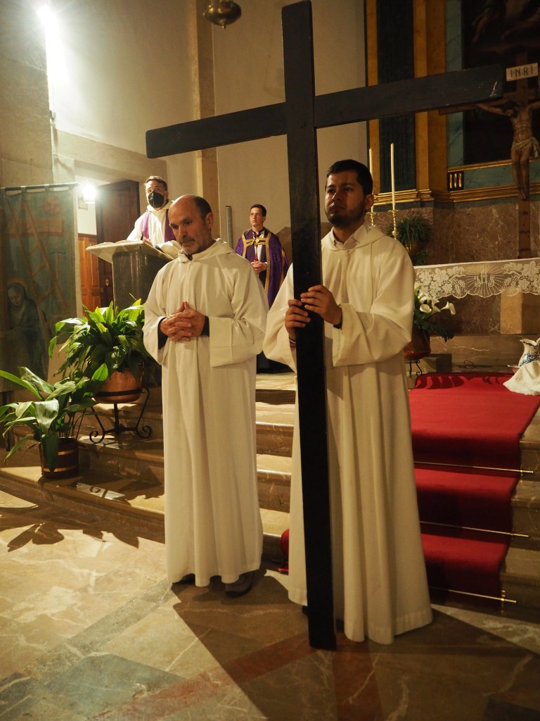 Tot seguit pren la paraula el predicador d’aquest any, el vicari de la UP Joan Bauçà, qui torna a aclarir el que significa la Passió del Senyor. “No és només un sofriment sinó que també és un amor apassionat”, afirma. I convida a tots els presents a descobrir què hi ha dins la ferida del Senyor. En primer lloc, Mn. Joan Bauçà apunta que el que veim a la creu és un home ferit, una humanitat ferida pel pecat. I un Jesús que vol carregar sobre ell tot allò que fereix a la humanitat. En segon lloc, hi veu un home que perdona als seus botxins. I per al vicari de la UP l’actitud de Jesús en la creu és també una convidada per a tots nosaltres de tornar a començar contínuament. Per aclarir millor aquestes paraules, afegeix: “Jesús te mira i te diu <<t’aixec, dona’m la mà>>, deixa que te miri la ferida i t’aixequi”. En tercer lloc, comenta que a la creu hi ha un Déu que es fa petit, que no s’escandalitza de la pobresa. I explica que que es fa petit perquè està enamorat de nosaltres i ens vol mimar. Que se’ns ofereix per ser el nostre descans. I en darrer lloc, hi descobreix un cor obert. En el costat obert de Jesucrist per la llançada del soldat, Mn. Joan Bauçà hi veu una porta pel Paradís i una pregunta: “vols esser salvat?”. El vicari de la UP acaba la seva reflexió explicant que en aquests moments el món ha oblidat que necessita esser salvat. I conclou: “La salvació és real, mira a Crist crucificat i demana-li <<Senyor, desperta’m el desig de ser salvat>>.