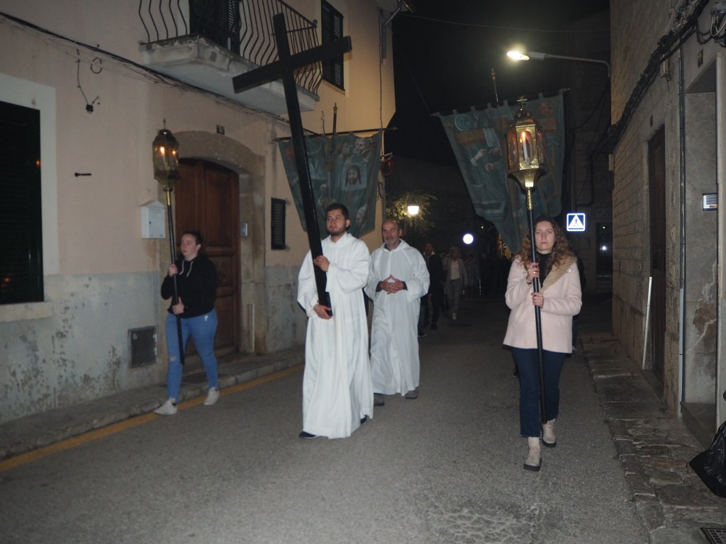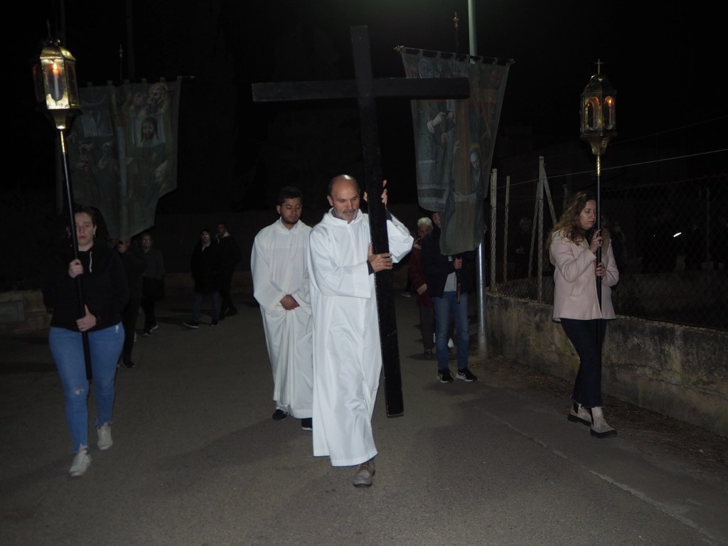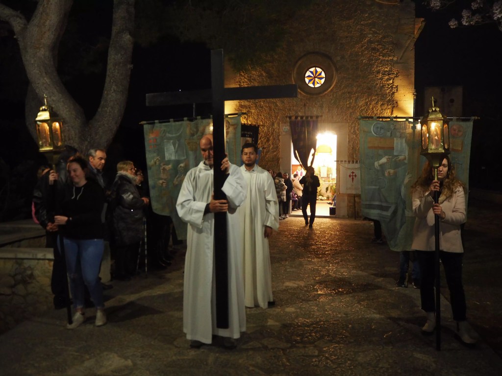 És dimecres sant i Lloseta es prepara per acompanyar el Senyor en els seus darrers moments. Els fidels s’ajunten a l’oratori del Cocó a les deu del vespre. És l’inici de la processó del Silenci. El rector de la UP, Carles Seguí, dona les primeres indicacions, convidant al recolliment. I té una paraula sobre com afrontar el sofriment, tant per afrontar la meditació sobre la Passió del Senyor com en la vida de cadascú. “No hem de disfressar la realitat sinó revestir-nos de la Pasqua definitiva”, diu a tots els assistents. I és que la Passió s’ha de veure sempre des del portal de la Pasqua, de la resurrecció de Jesucrist que anuncia també la nostra.