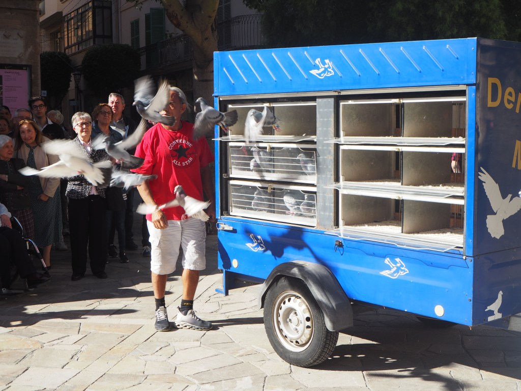 La celebració anà acompanyada dels cants del cor parroquial i el so de la banda Unió Musical Inquera, que entonà les notes de l’himne a Santa Maria la Major. També hi intervingueren els cossiers d’Inca, que ballaren l’oferta. En acabar l’eucaristia, com ja és tradició, es dugué a terme l’amollada de coloms, enguany amb una especial intenció de petició de per la pau.