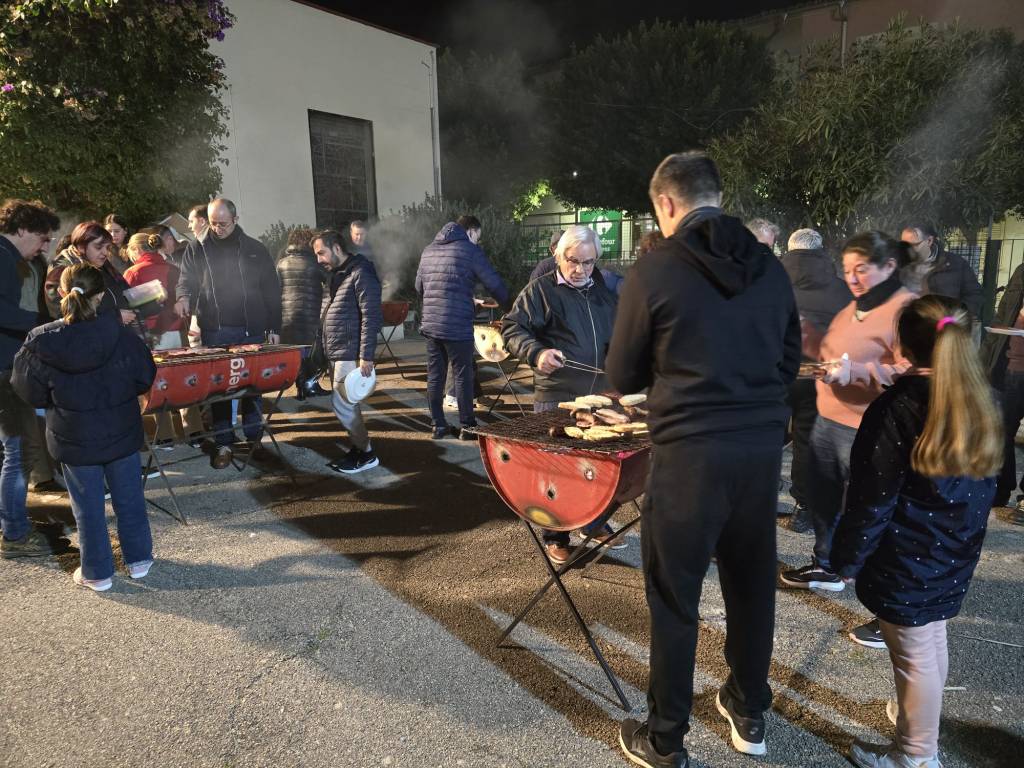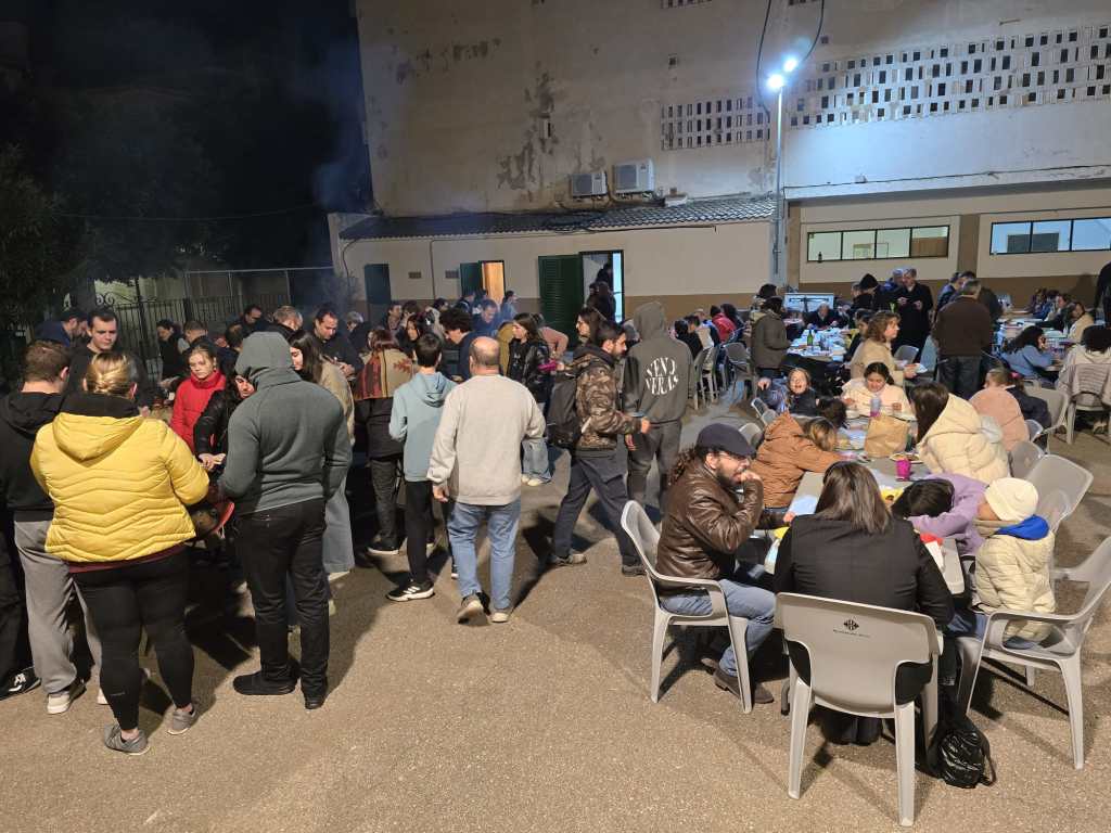 Després de la pregària, es dugué a terme una torrada benèfica al pati per recaptar fons per a les obres parroquials, que va estar molt participada i animada.