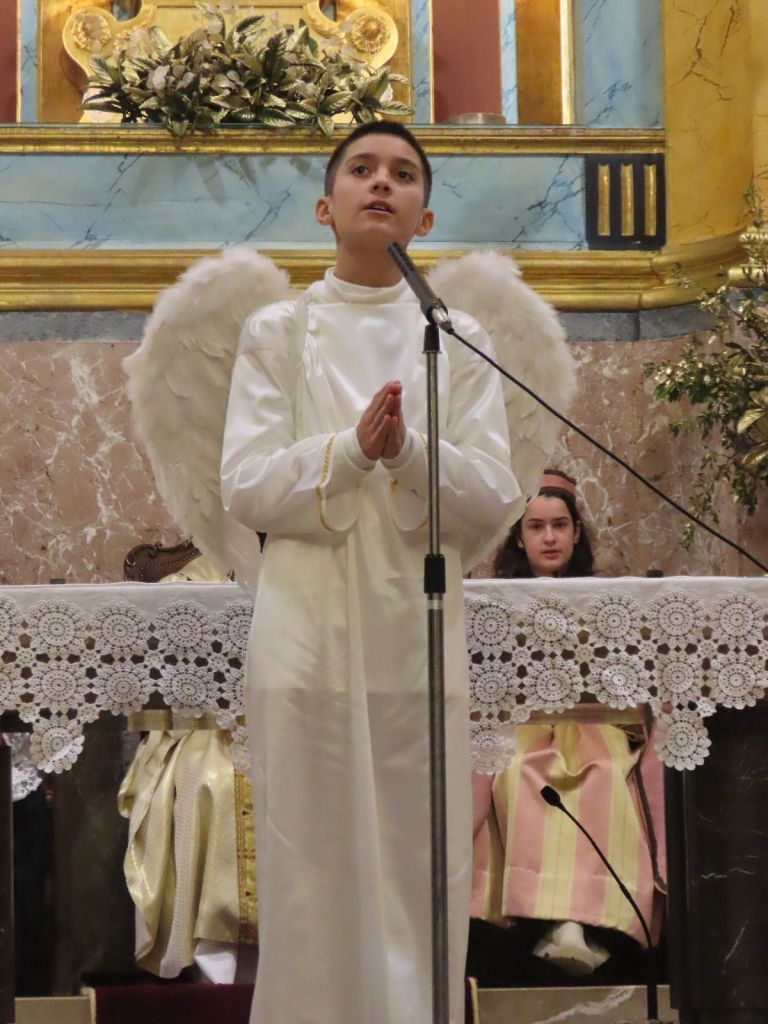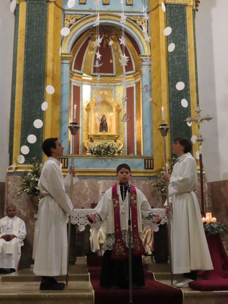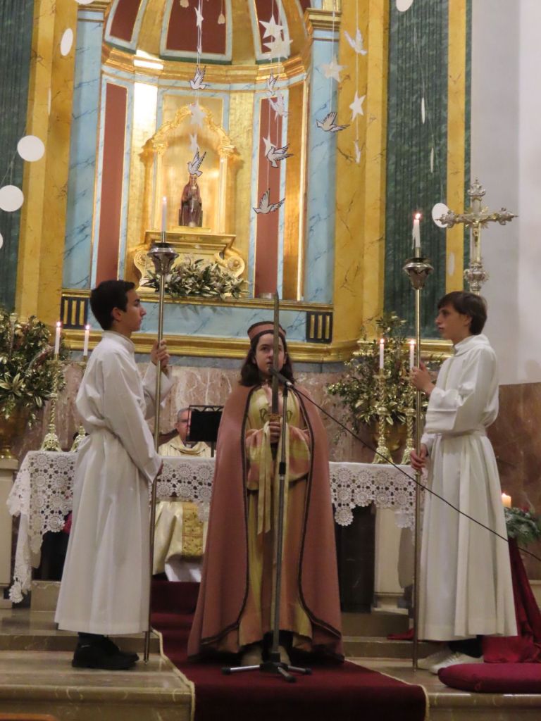Tampoc no hi va faltar la repetició de les intervencions que ja s’havien escoltat a les Matines. El Sermó de la Calenda anà a càrrec de Sergi Ruiz. Toni Ramon tornà a posar veu al cant de l’àngel. I Maria Capó entonà el cant de la sibil·la. Per acabar, tots els presents es posaren drets i, sota la direcció del Cor Parroquial, cantaren l’Adeste Fideles per proclamar i compartir l’alegria pel naixement del nin Jesús.