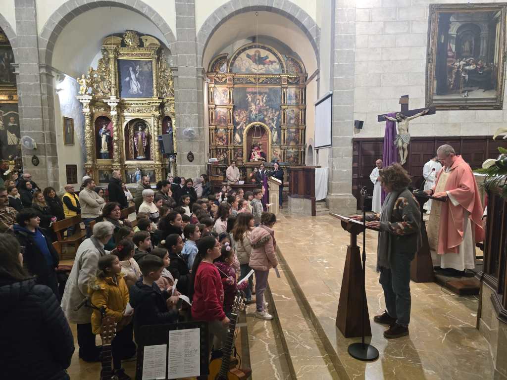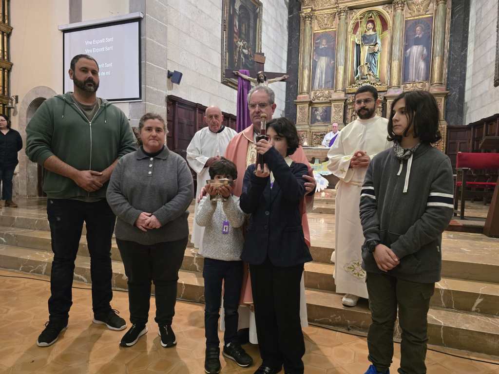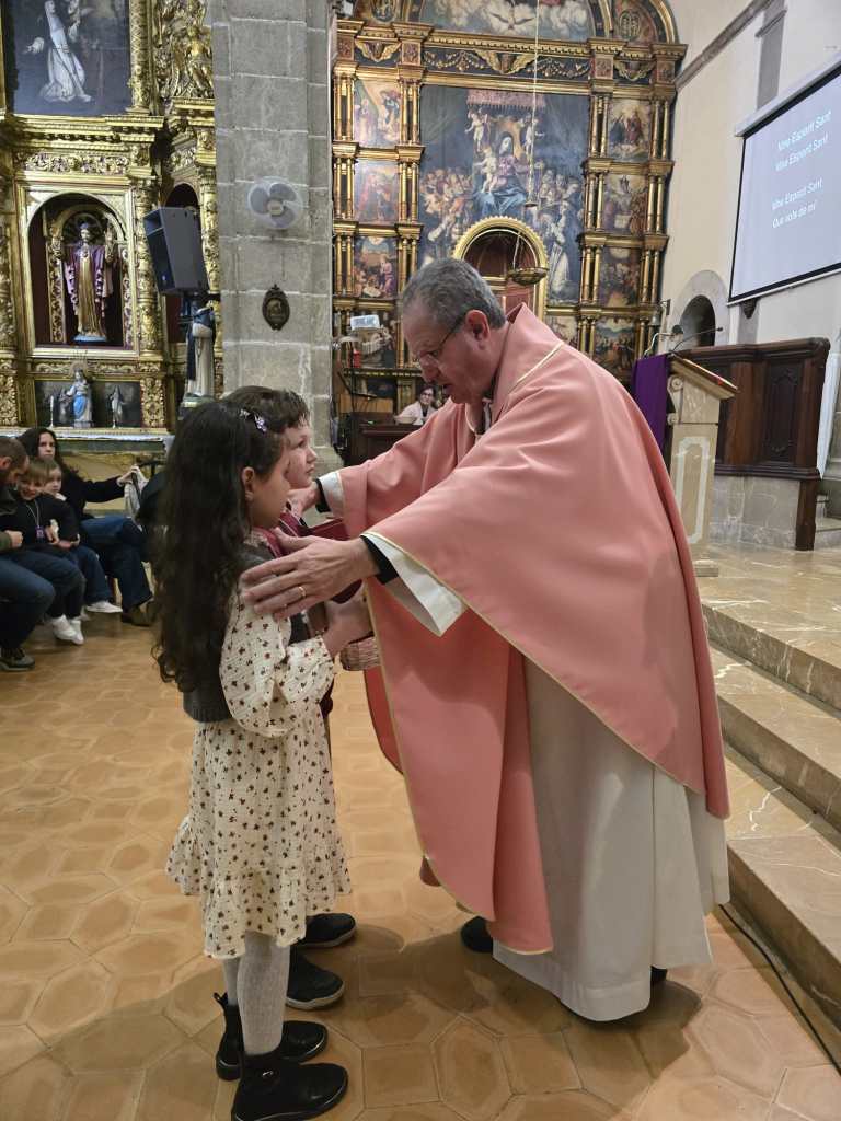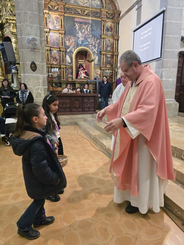 Després d’aquesta formació, tots junts, infants i adults, participaren de l’eucaristia dominical. En el moment de les ofrenes, els nins i nines presentaren a l’altar els seus treballs, al costat del pa i del vi. I a l’hora de professar la fe, reberen el credo. La trobada conclogué així, amb la celebració de la missa, per aprendre a mirar a Aquell de qui s’havia parlat durant tot el matí.