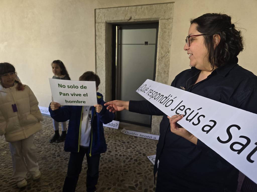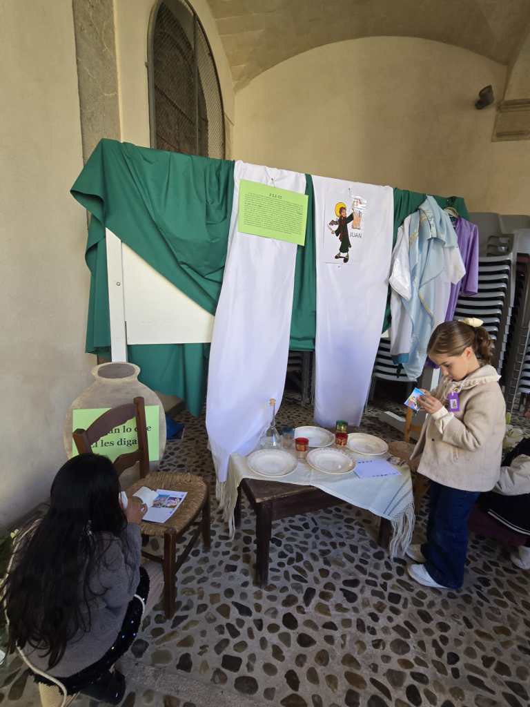 Per als nins i nines, l’equip de pastoral i les seves catequistes varen preparar una gimcana per a què poguessin viure de més a prop alguns dels moments clau de la vida de Jesús. Així, escoltaren per exemple el relat biblíc de les temptacions de Jesús al desert per a poder participar d’un joc, o s’endinssaren en el miracle de la conversió de l’aigua en vi a les noces de Canaan. Mentrestant, els seus pares pogueren escoltar el testimoni d’una catequista, Carmen López, que també és metge de medicina preventiva, qui va transmetre als pares que es pot viure la fe cristiana en qualsevol situació. Ella està casada amb un home musulmà, seguint les disposicions que marca l’església catòlica, i va relatar com des de l’obertura que li dona la seva fe pot viure la diversistat cultural i religiosa, reconeixent el que hi ha de veritable en altres experiències. Com també les va transmetre com es pot fer compatible la fe i la vocació al treball i específicament amb la medicina.